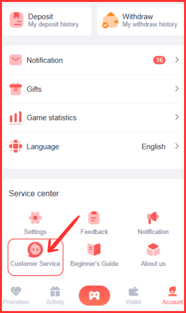For 91 club support service first you have to go official website. Click on login button, enter a phone number or email id and password. After that click on account button in bottom of page.